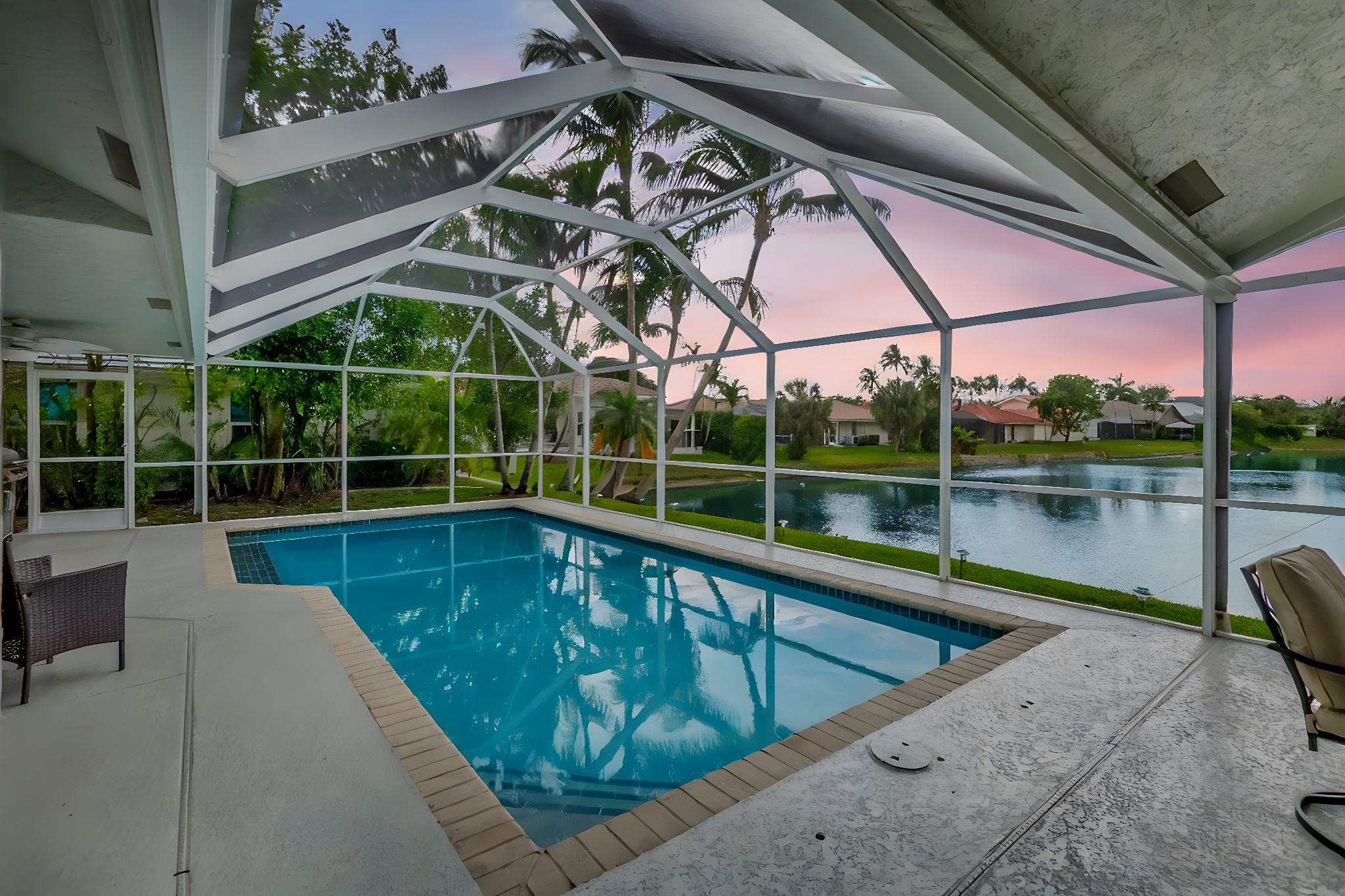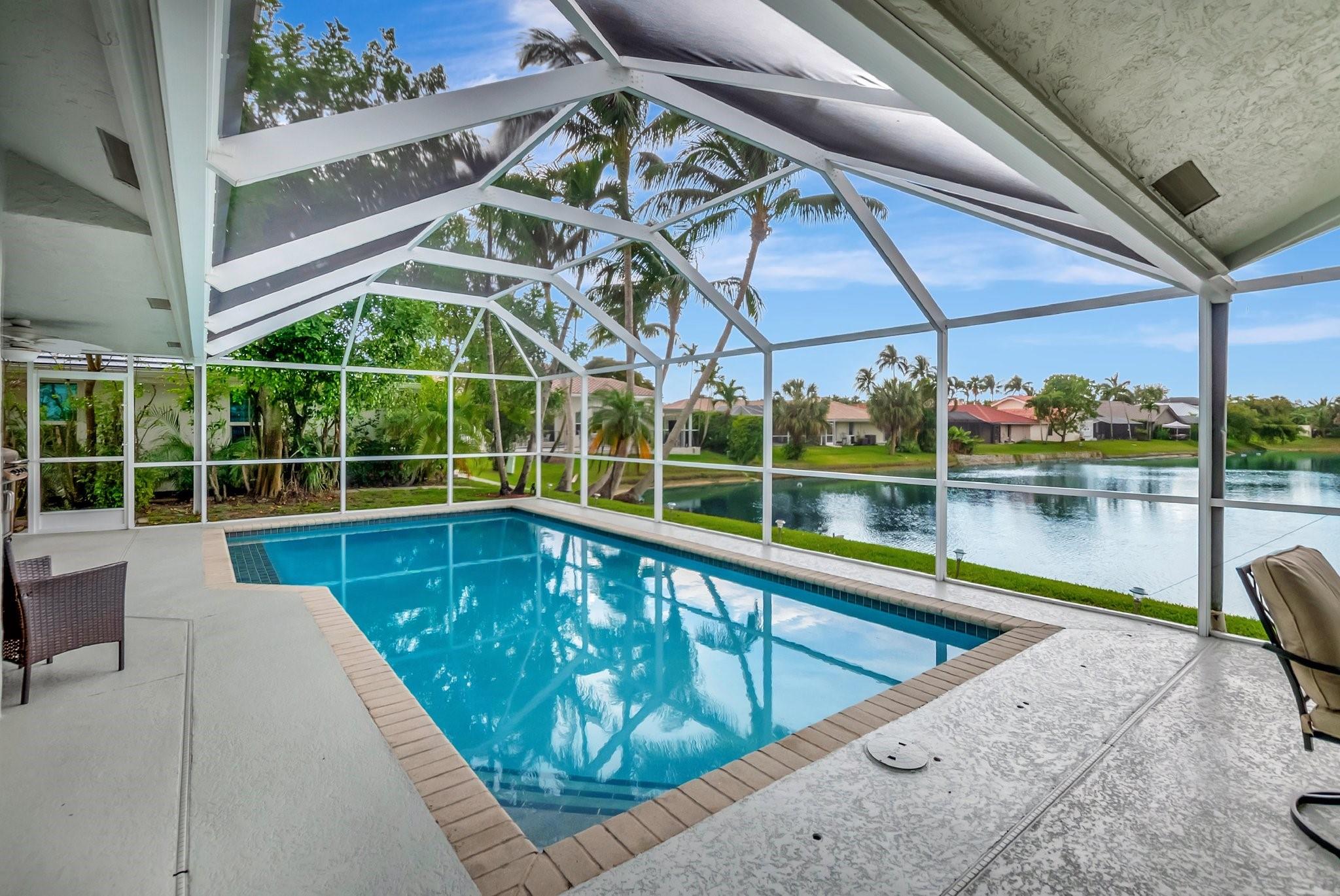 Sensational LAKEFRONT POOL home! 3/3 w/ wide open floorplan will delight the entire family. Double doorway to BIG LR boasts 13’ soaring ceilings w/ smooth finish & neutral tile flooring. Expansive views of the WIDE LAKE. Large DR is perfect for family meals. UPDATED chef’s kitchen w/newer S/S appliances, sleek 30” cabinets & double pantry. BIG FR boasts lake views – ready for movie night. Fall in love in the HUGE, primary suite w/ natural light & rich bamboo floors. CUSTOM walk-in closets. Sliding door to the patio & pool. Primary bath boasts a big stall shower & soaking tub. Both BRs 2 & 3 have bamboo floors. Guest baths feature marble top vanities & frameless showers. IMPACT WINDOWS & DOORS! Huge, covered, screened patio w/ LONG LAKE views. Sparkling POOL! ALL NEW A/C DUCT WORK! LOW HOA